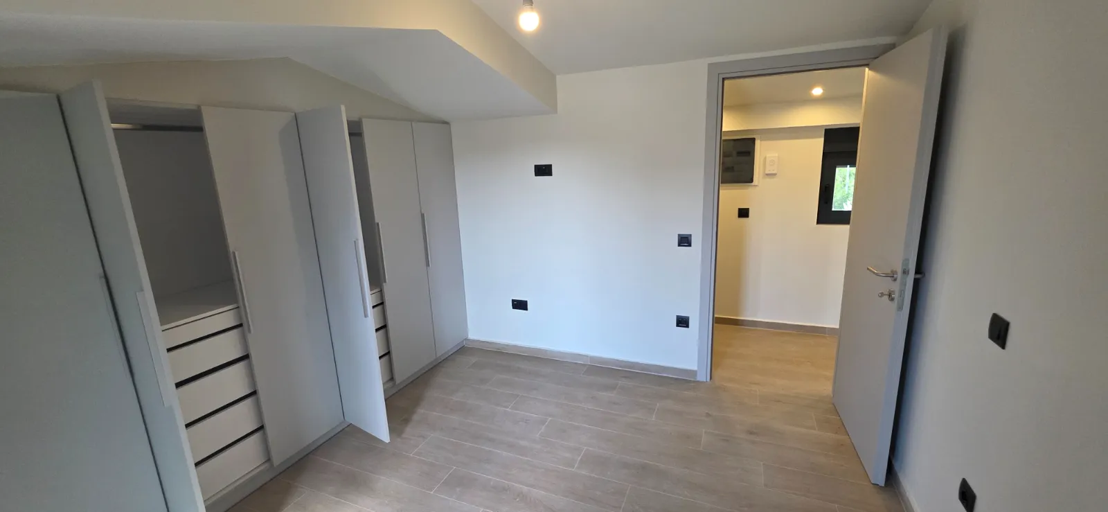 - Comments: Newly built two-level residence (completed in 2024) with modern architecture, high construction quality, and bright, functional spaces. Comprises an open-plan living room and kitchen, 3 bedrooms, and 2 bathrooms. Located in a quiet and easily accessible neighborhood, just 1,200 m from the sea and 250 m from a bus stop. An ideal choice for those seeking comfort, quality, and a sense of independence.