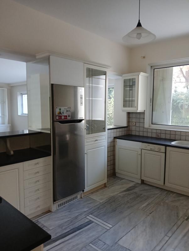 - Comments: Ground-floor two-level maisonette for rent with a raised ground floor, total area of 170 sq.m. The property consists of 2 bedrooms and 1 bathroom, a kitchen, and a living room on the main level. The second level (playroom) includes 3 bedrooms, 2 bathrooms, and a WC. The property is in excellent condition and features an internal elevator. It is located in one of the most beautiful areas, offering excellent surroundings and a green, pleasant environment.